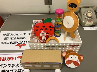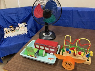 当館の工作教室で作った見本などを中心に、幼児向けのおもちゃを各授乳室に置いています。