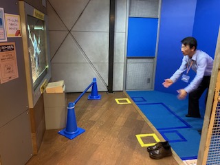 さて、閉館後、動作チェックを兼ねて職員のTさんが「②化石を発掘しよう」にチャレンジ。