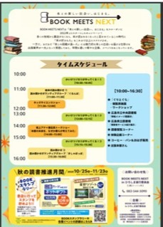 そのminamoaの9階、ソラモア広場にて、11月1日(土)の10:00~16:30に「BOOK MEETS NEXT inひろしま」というイベントが開催されます