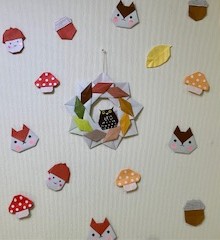 これは3階工作室入口の掲示物。工作教室のインストラクターさんが折り紙でつくってくださいました。
