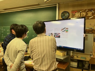 指導者の皆さんと、ネット画面を見ながら思案しているクラブ員のふたり・・・。