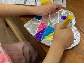 今日の「たのしい工作室」は「キラキラステンドホイル」づくり。
