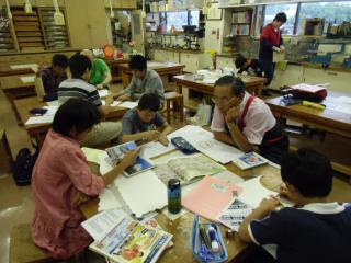 録音が済んだら、演出に合わせて絵を描いていきます。みんなで描いた絵は、パソコンに取り込んで、専用のソフトを使って動かしていきます。